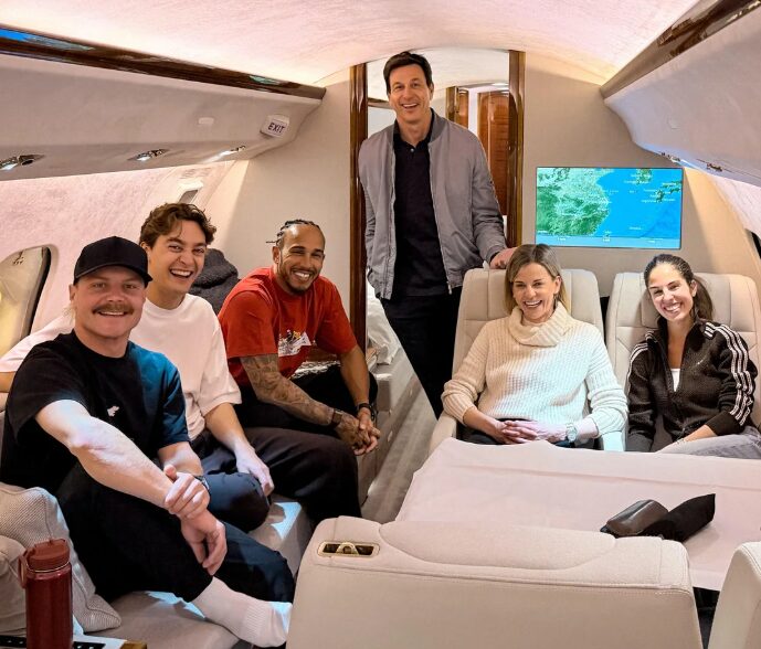 【海外の反応】ボッタス「ありがとうトト、家まで送ってくれて」メルセデスのプライベートジェットに元チームメイト大集合